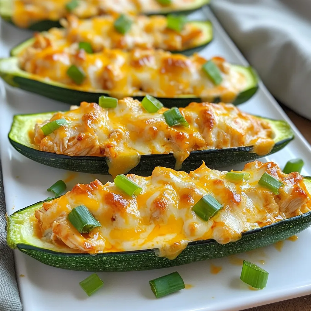 Presentation matters! Place the stuffed zucchini on a bright platter. Drizzle extra buffalo sauce around the edges for color. Top with sliced green onions and parsley for a fresh look. Serve them warm, and watch everyone enjoy! This dish pairs well with a simple salad or crusty bread. The flavors balance nicely and make a great meal.
