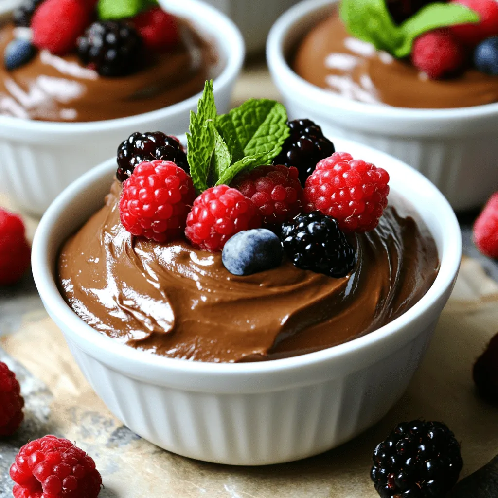 Serve your mousse in small bowls or glasses. Decorate each serving with fresh berries like raspberries or strawberries. A sprig of mint adds a nice touch, too. For a fun twist, add a dollop of whipped coconut cream on top. Chill the mousse for about 30 minutes before serving for the best taste.
