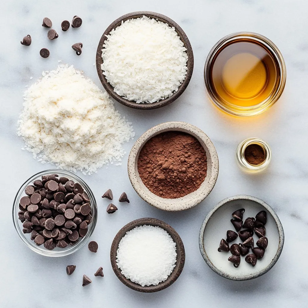 To get the right texture, make sure to mix your ingredients well. Use your hands or a spatula to combine the coconut, almond flour, cocoa powder, maple syrup, melted coconut oil, vanilla, and salt. You want a sticky dough that holds together. If it feels too dry, add a tiny bit more syrup or coconut oil. If it's too wet, a bit more almond flour will help.