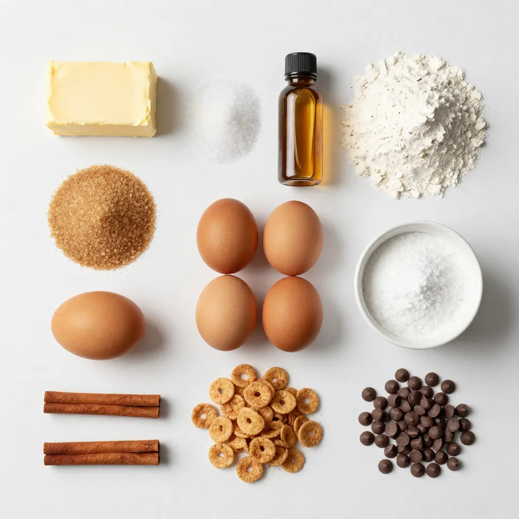 To make these delicious Cinnamon Toast Crunch cookies, you will need the following ingredients: - 1 cup unsalted butter, softened to room temperature - ¾ cup packed brown sugar - ½ cup granulated sugar - 1 large egg - 1 teaspoon pure vanilla extract - 2 cups all-purpose flour - 1 teaspoon baking soda - ½ teaspoon fine salt - 1 tablespoon ground cinnamon - 1 ½ cups Cinnamon Toast Crunch cereal, crushed slightly - ½ cup mini chocolate chips (optional) Each ingredient plays a key role in creating the perfect cookie. The butter adds richness and moisture. Brown sugar brings in a deeper flavor and chewiness, while granulated sugar helps with spreading. The egg provides structure and binds everything together. The flour and baking soda create the right texture, giving the cookies a soft, chewy bite. Salt enhances all the flavors. Ground cinnamon gives that warm, comforting taste that we all love. The Cinnamon Toast Crunch cereal adds a delightful crunch and a hint of sweetness, while mini chocolate chips can make the cookies even sweeter. Gather these ingredients, and let’s get baking! {{ingredient_image_2}} - Preheat oven to 350°F (175°C). - Line a baking sheet with parchment paper. - In a large bowl, combine 1 cup of softened butter, ¾ cup of brown sugar, and ½ cup of granulated sugar. - Mix these together until they are light and fluffy. This takes about 2-3 minutes. - Next, add 1 large egg and 1 teaspoon of pure vanilla extract. Mix well until combined. - In another bowl, whisk together 2 cups of all-purpose flour, 1 teaspoon of baking soda, ½ teaspoon of salt, and 1 tablespoon of ground cinnamon. - This step helps spread the flavors evenly. - Gradually add the dry mix to the wet ingredients. Stir gently until just combined. - Be careful not to overmix. This keeps the cookies soft. - Now, fold in 1 ½ cups of crushed Cinnamon Toast Crunch cereal and ½ cup of mini chocolate chips if you want extra sweetness. - Use a cookie scoop or spoon to drop rounded tablespoons of dough onto the lined baking sheet. - Space them about 2 inches apart to allow for spreading. - Bake in the oven for 10-12 minutes. Look for lightly golden edges and soft centers. - After baking, let the cookies cool on the sheet for about 5 minutes. - Then, transfer them to a wire rack to cool completely. This helps them firm up nicely. To make the best Cinnamon Toast Crunch cookies, you must not overmix the dough. Overmixing can make your cookies tough. Mix just until you see no dry flour. This keeps the cookies soft and tender. For chewy centers, bake them until the edges are golden brown, but the centers look slightly underbaked. Let them cool on the baking sheet for a few minutes before moving them. This extra time helps them set without becoming hard. For a fun display, use a colorful plate to serve your cookies. Stack them high for a tempting look. You can also sprinkle some crushed Cinnamon Toast Crunch on top. This adds a nice crunch and makes your cookies stand out. Consider pairing your cookies with a glass of milk. It not only enhances the flavor but also makes for a delightful snack. Enjoy every bite! Pro Tips Chill the Dough: For thicker cookies, refrigerate the dough for at least 30 minutes before baking. This helps the cookies hold their shape and enhances the flavor. Use Fresh Ingredients: Ensure your baking powder and spices are fresh for the best flavor and texture in your cookies. Mixing Technique: When combining wet and dry ingredients, mix just until incorporated. Overmixing can lead to tough cookies. Storing Cookies: Store baked cookies in an airtight container at room temperature for up to one week to maintain their softness and flavor. {{image_4}} You can easily change up the flavor of your Cinnamon Toast Crunch cookies. Adding a pinch of nutmeg or allspice can give your cookies a unique twist. These spices blend well with cinnamon and add warmth to your treats. Consider using different types of chocolate chips. Dark chocolate pairs nicely with the sweetness. You could also try white chocolate or even butterscotch chips for a fun surprise. If you like nuts, chopped pecans or walnuts can add crunch and richness to your cookies. Just remember to chop them into small pieces for even mixing. If you need gluten-free cookies, swap all-purpose flour for a gluten-free blend. Look for brands that have xanthan gum to help with the texture. You can also use almond flour for a nutty taste. For vegan cookies, replace the egg with a flax egg. Mix one tablespoon of ground flaxseed with three tablespoons of water. Let it sit for five minutes until it thickens. Use coconut oil instead of butter for a dairy-free option. These changes let everyone enjoy these sweet treats! To keep your cookies fresh, store them in an airtight container. This helps to keep them soft and chewy. You can use a glass jar or a plastic container with a lid. If you want to add some fun, you can line the container with parchment paper. This adds a nice touch and helps absorb any moisture. You can freeze raw cookie dough for later use. To do this, scoop the dough onto a baking sheet, leaving space between each scoop. Freeze the dough for about an hour until firm. Then, transfer the frozen dough to a zip-top bag. Be sure to label it with the date! For baked cookies, let them cool completely. Once cooled, place them in a single layer in an airtight container. You can also stack them with parchment paper in between to prevent sticking. When you want to enjoy them, just thaw them at room temperature. They’ll taste fresh and delicious! Yes, you can use other cereals. Try using Fruity Pebbles for a fruity twist. You can also use Rice Krispies for a lighter texture. Each cereal adds a unique flavor and crunch. Just remember, sweeter cereals will make your cookies sweeter. To make these cookies nut-free, skip any nuts in the recipe. You can also check your chocolate chips. Some chocolate chips may have traces of nuts. Always read labels to e