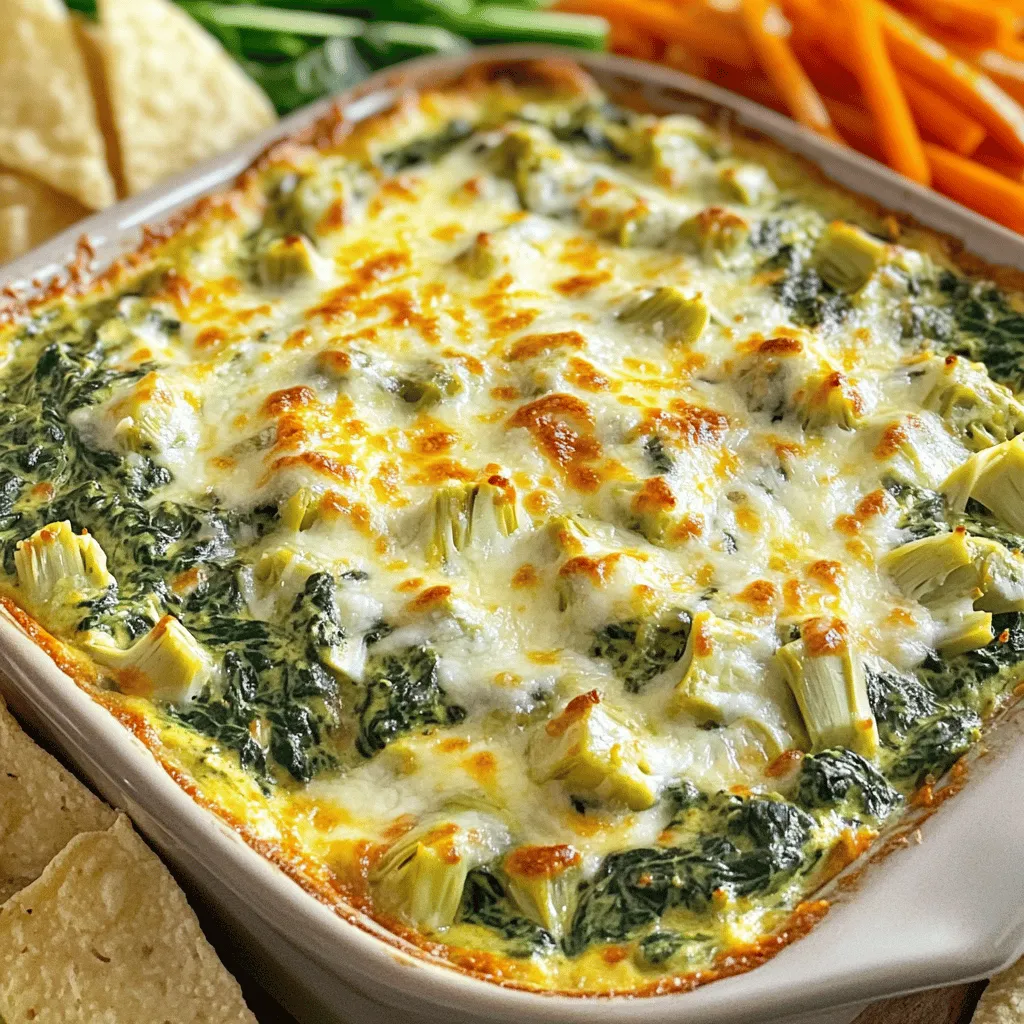 To get that creamy dip just right, start with softened cream cheese. It mixes better. Blend it with sour cream and mayonnaise until smooth. This is your base. When you add the spinach and artichokes, stir gently. You want to keep some chunks for texture. Don’t overmix the cheese either. Folding it in helps maintain that creamy feel.