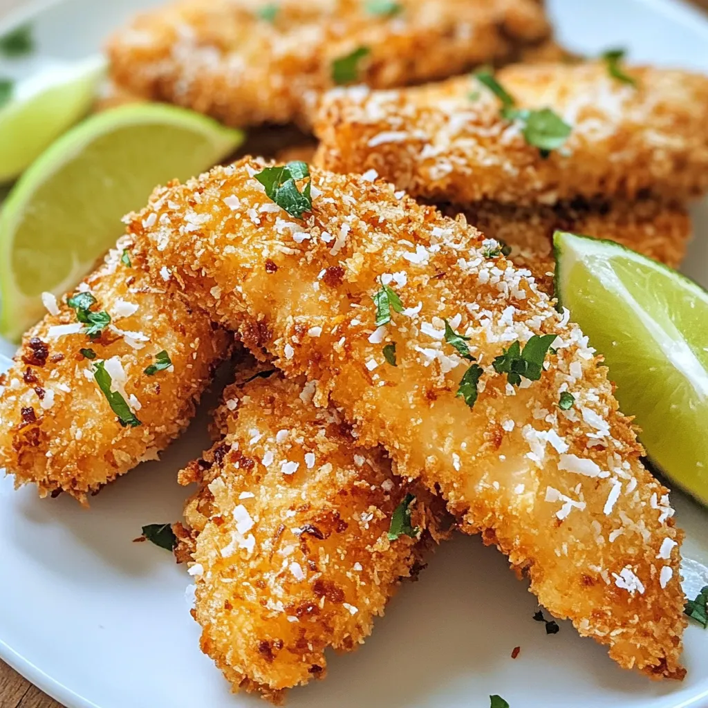 With these ingredients, you can create crispy coconut chicken tenders. This dish is fun to make and even better to eat. Enjoy the process and get ready for a delicious meal!
