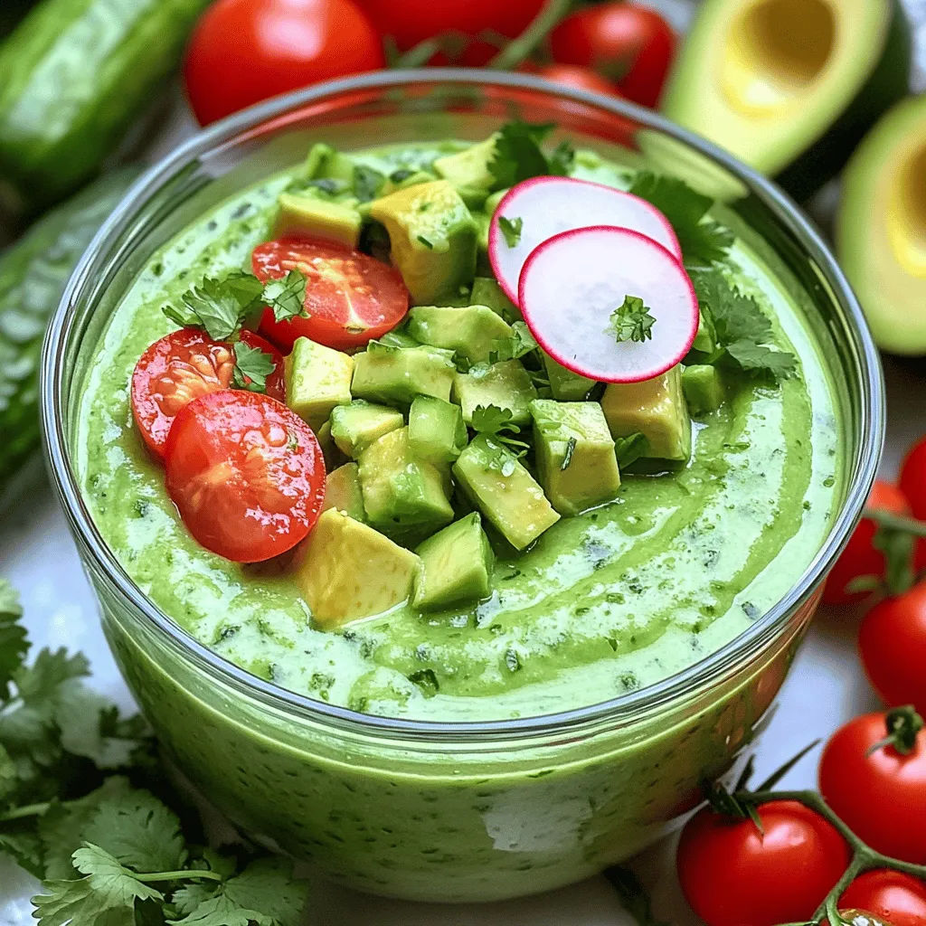 This gazpacho is not just tasty; it’s also healthy. Cucumbers are low in calories and high in water. Avocados provide healthy fats and fiber. Tomatoes are rich in vitamins C and K. This soup is full of nutrients, which makes it a great choice for a light meal or snack. Enjoy this fresh dish, knowing it supports your health!