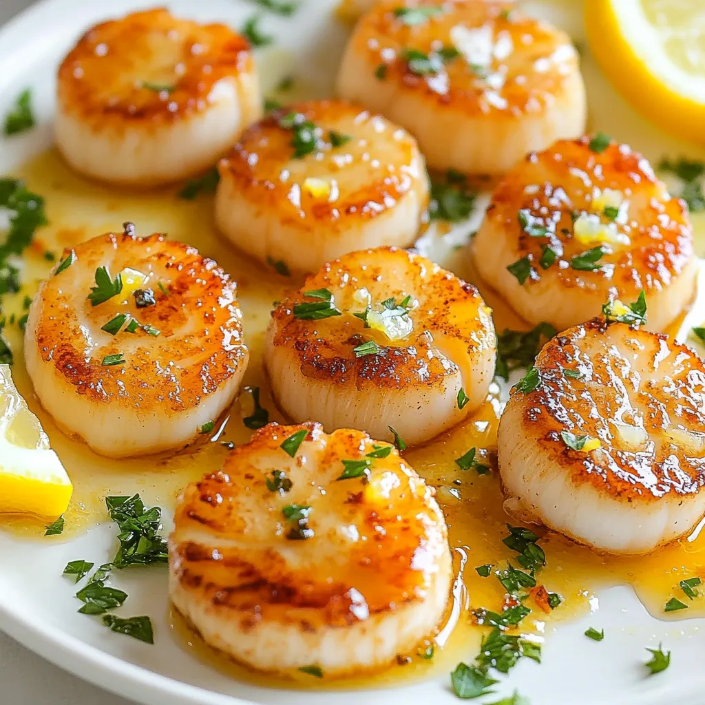 Presentation matters! Arrange the scallops on warm plates. Drizzle the lemon garlic butter sauce over them. A sprinkle of fresh parsley adds color and flavor. Serve with lemon wedges for extra zing. You can pair these scallops with a light salad or rice. This balances the rich butter sauce nicely. Enjoy your meal with a refreshing glass of white wine!