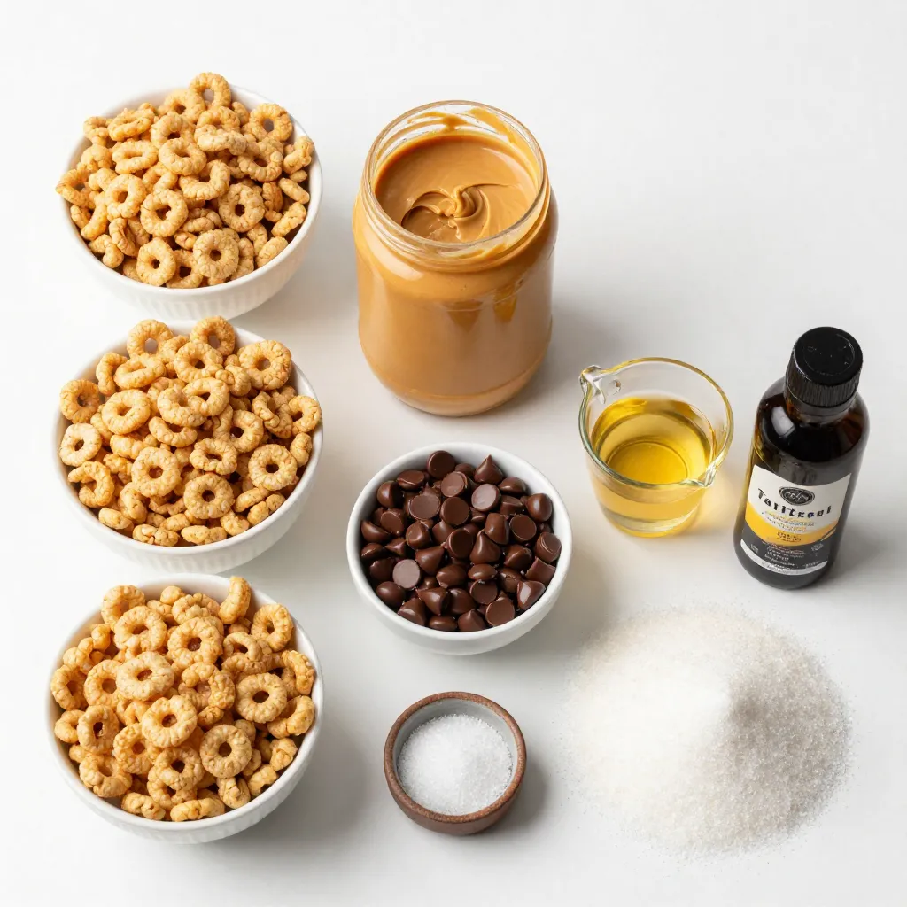 To make Peanut Butter Chocolate Rice Krispie Treats, gather these simple ingredients: - 4 cups Rice Krispies cereal - 1 cup creamy peanut butter - 1 cup semi-sweet chocolate chips - ½ cup light corn syrup - ½ cup granulated sugar - 1 teaspoon vanilla extract - Pinch of salt If you have dietary restrictions, you can still enjoy these treats. Here are some options: - Use brown rice cereal for a gluten-free version. - Swap creamy peanut butter with almond or cashew butter for nut allergies. - Substitute corn syrup with agave syrup or honey for a different sweetener. - Choose dairy-free chocolate chips to make it vegan friendly. For the best flavor and texture, I recommend these brands: - Rice Krispies: Kellogg's offers the classic crunch. - Peanut Butter: Jif or Skippy both provide a smooth consistency. - Chocolate Chips: Ghirardelli or Nestlé Toll House deliver rich, semi-sweet flavor. - Corn Syrup: Karo is the go-to brand for sweetening your treats. Using quality ingredients makes a big difference in taste. Enjoy making your treats! {{ingredient_image_2}} Start by lining an 8x8 inch baking dish with parchment paper. Make sure the paper hangs over the sides. This will help you lift out the treats later. Lightly spray the parchment with non-stick cooking spray. This step prevents the treats from sticking. In a medium saucepan, mix the light corn syrup, granulated sugar, and a pinch of salt. Heat the mixture over medium heat. Stir constantly until it starts to boil, which should take about 2-3 minutes. Once it boils, remove the saucepan from heat. Quickly add the creamy peanut butter. Stir until the mixture is smooth. Then, mix in the vanilla extract. Pour the Rice Krispies into a large bowl. Gently pour the warm peanut butter mixture over the cereal. Use a spatula to fold the ingredients together. Make sure every piece of cereal gets coated. Then, mix in ¾ cup of chocolate chips. The warm mixture will melt the chips a little, making it gooey and sweet. In a microwave-safe bowl, place the remaining ¼ cup of chocolate chips. Microwave the chips in 20-second bursts, stirring each time. Continue until the chocolate is fully melted and smooth. Carefully drizzle the melted chocolate over the pressed Rice Krispie mixture. Let it spread a little for a lovely marbled look. To achieve the best-coated Rice Krispie treats, follow these steps: - Warm Ingredients: Make sure your peanut butter is at room temperature. This helps it mix better with the corn syrup. - Use a Spatula: Use a large spatula to mix the cereal and the warm peanut butter mixture. Fold gently to avoid crushing the cereal. - Press Firmly: When you transfer the mixture to the baking dish, press it down firmly. This helps the treats hold their shape later. To keep your treats fresh and tasty, store them in an airtight container. Here are a few tips: - Room Temperature: They last well at room temperature for up to 3 days. - Refrigeration: For longer freshness, store them in the fridge for up to a week. - Avoid Freezing: Freezing can change the texture, so it's best to enjoy them fresh. Avoid these common pitfalls for perfect treats: - Overheating the Mixture: If you heat the corn syrup too long, it can harden. Keep an eye on it while it boils. - Not Mixing Enough: Be sure to coat all the cereal pieces. Uneven coating can lead to dry spots in the treats. - Skipping the Chill Time: Chilling helps the treats set properly. Don't rush this step for the best texture. Pro Tips Use Fresh Ingredients: Make sure your peanut butter and chocolate chips are fresh for the best flavor and texture in your treats. Press Firmly: When transferring the mixture to the baking dish, press down firmly to ensure the treats hold together well once set. Experiment with Mix-Ins: Feel free to add in nuts, dried fruits, or even a sprinkle of sea salt for a delightful twist on the classic recipe. Store Properly: Keep the Rice Krispie treats in an airtight container at room temperature for up to a week to maintain their freshness. {{image_4}} If you want a nut-free treat, you can swap creamy peanut butter for sun butter. Sun butter tastes great and makes these treats safe for kids with nut allergies. You can also try soy nut butter. Both options provide a creamy texture without nuts. Mixing in extras can take your treats to the next level. You can add mini marshmallows to create a chewy texture. Chopped nuts also add a nice crunch. Try adding pretzel pieces for a salty twist. Just remember to fold them in gently after mixing the cereal. Want to switch up the flavor? You can add butterscotch chips for a sweeter note. Coconut flakes can bring a tropical vibe to your treats. You might even add a bit of cocoa powder for a rich chocolate flavor. Get creative and make the recipe your own! To keep your Peanut Butter Chocolate Rice Krispie Treats fresh, store them in an airtight container. This keeps moisture out and helps them stay crispy. Place parchment paper between layers if stacking, so they don’t stick together. Store them at room temperature for up to five days. If you want to save some for later, freezing is a great option. Wrap each treat in plastic wrap tightly. Then, place them in a freezer-safe bag or container. These treats can last up to three months in the freezer. Label the bag with the date for easy reference. When you're ready to enjoy your treats again, take them out of the freezer. Let them thaw in the fridge for a few hours or at room temperature for about 30 minutes. If you want them warm and soft, microwave each treat for about 10 seconds. This will help restore the gooey texture and melt the chocolate slightly. Enjoy! You can replace corn syrup with honey or maple syrup. Both options work well. They add sweetness and help bind the treats. Just use the same amount as corn syrup in the recipe. Yes, you can use crunchy peanut butter! It will add a nice texture to the treats. Some people love the extra crunch it gives, making each bite more fun. The 