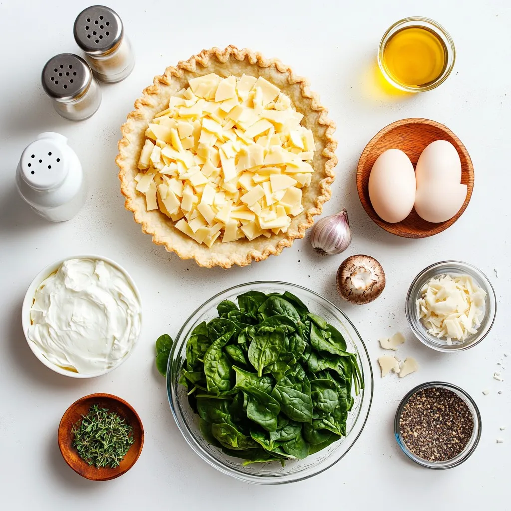 For this savory spinach mushroom quiche, you will need: