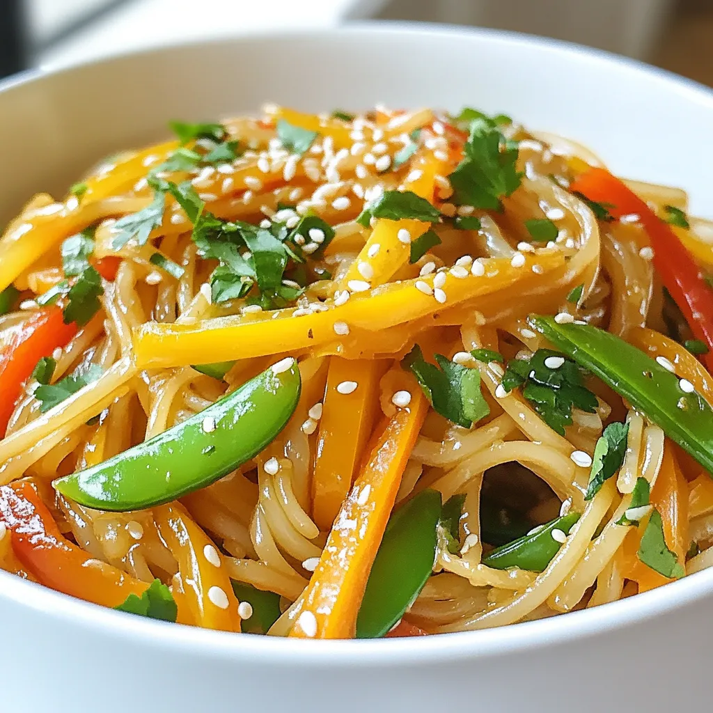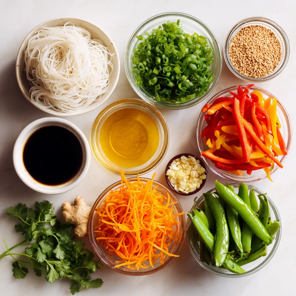 I love these ingredients because they create a vibrant dish. The rice noodles serve as a great base. They soak up all the flavors without overpowering the other ingredients. The sesame oil adds a nutty taste that makes each bite special.