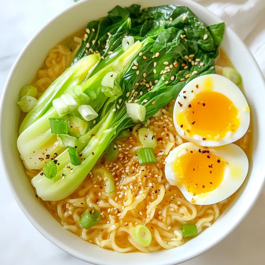 To serve, ladle the spicy garlic butter ramen into bowls. Garnish with sliced green onions and a sprinkle of sesame seeds. If you like, add a soft-boiled egg on top. This adds a creamy touch. For a final flourish, drizzle a bit of extra melted garlic butter over the ramen. Enjoy your delightful meal!