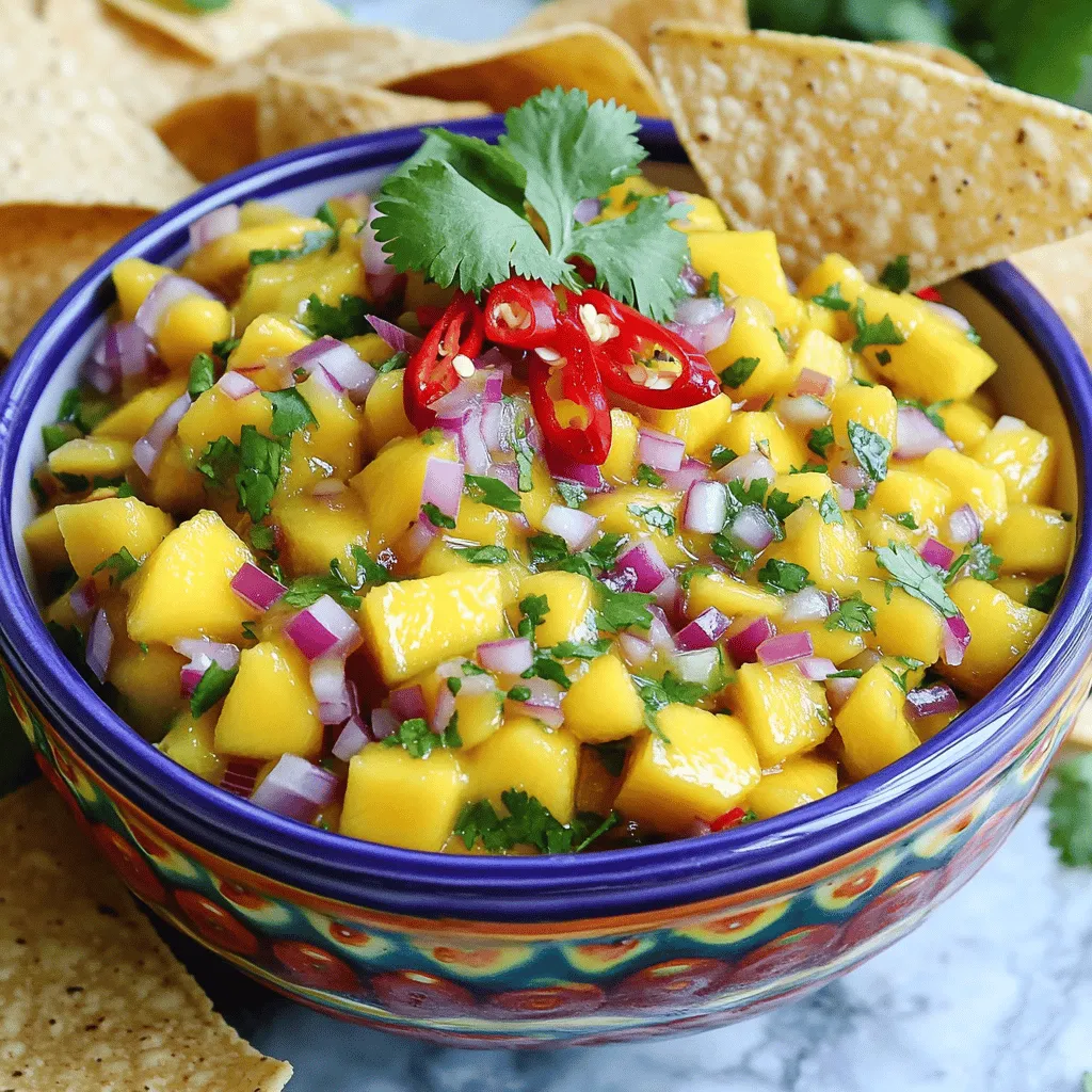 - 1 ripe mango, peeled and diced into bite-sized pieces - 2 fresh habanero peppers, deseeded and finely chopped (use gloves for safety) - ½ medium red onion, finely diced - ½ cup fresh cilantro leaves, chopped coarsely - 2 tablespoons fresh lime juice (adjust more or less to taste) - 1 tablespoon honey (optional, for a touch of sweetness) - Salt, to your preference To make a great spicy mango habanero salsa, start with the freshest ingredients. The ripe mango brings a sweet touch that balances the heat from habaneros. The two habaneros give this salsa its fiery kick. When you chop them, wear gloves to protect your hands from their heat. Next, the red onion adds a sharp crunch. Dice it finely to blend well with the other ingredients. Fresh cilantro leaves bring a bright flavor that makes the salsa refreshing. Squeeze fresh lime juice into the mix. The acidity from the lime is key to enhancing all the flavors. If you like it sweeter, consider adding honey. This step is optional, but it can round out the taste nicely. Finally, sprinkle in salt to your liking. Remember, the flavors will develop as they mix, so adjust as needed. Using these ingredients, you’ll create a vibrant, flavorful salsa that everyone will love. 1. Combining the main ingredients In a medium bowl, start by adding the diced mango, finely chopped habanero peppers, and red onion. Mix gently with a spatula. This keeps the mango pieces intact. 2. Adding cilantro and lime juice Next, add in the chopped cilantro. This adds a fresh taste. Squeeze the fresh lime juice all over the mixture. Lime juice brightens the flavors and balances the heat. 3. Mixing and adjusting flavors If you want a sweeter salsa, now is the time for honey. A tablespoon works well, but taste first. Stir everything gently until well mixed. Then, taste and add salt to your liking. You can also adjust the lime and honey if needed. 4. Resting for flavor development Let the salsa sit at room temperature for at least 15 minutes. This resting time helps all the flavors blend together. The longer it sits, the better it gets! When working with habanero peppers, safety comes first. Always wear gloves. These peppers can cause skin irritation. After handling, wash your hands well. Avoid touching your face or eyes. To adjust spice levels, you can remove the seeds and membranes. This part holds most of the heat. If you want more heat, add more finely chopped peppers. Start small, then taste. You can always add more. Perfecting the balance of sweetness and acidity is key. Use ripe mango for natural sweetness. The lime juice adds a bright, tangy kick. If it tastes too tart, a little honey helps. This optional ingredient brings harmony to the flavors. For serving, pair this salsa with crispy tortilla chips. It also complements grilled chicken or fish. Try it on tacos or as a topping for burgers. This salsa adds a fun twist to many dishes. {{image_4}} You can switch up the fruit in this salsa. Try using pineapple or peach for a new twist. Both fruits add a sweet touch, changing the salsa's vibe. You can also play with the peppers. If habaneros are too hot, use jalapeños or serranos. They add less heat but still bring great flavor. There are so many fun ways to serve this salsa. You can scoop it up with crispy tortilla chips for a classic snack. It also makes a great topping for grilled chicken or fish. Try pairing it with tacos for a zesty kick. For a fresh twist, serve it over a bed of greens or in a wrap. Each option brings out the bright flavors of the salsa! To keep your spicy mango habanero salsa fresh, store it in the fridge. Use a tight container to cover it well. This helps keep flavors strong and prevents spoilage. Always let the salsa cool to room temperature before sealing it. If you want to store the salsa long-term, freezing is an option. Use freezer-safe bags or containers. Make sure to remove any air before sealing. This prevents freezer burn and keeps your salsa tasty. When you are ready to use it, thaw it in the fridge overnight. Homemade salsa lasts about 3 to 5 days in the fridge. After this time, it may start to lose its flavor. Always check the salsa before eating it. Signs of spoilage include changes in color or texture. If you see any mold, do not eat it. A sour smell is also a sign that the salsa has gone bad. Always trust your senses! How spicy is this salsa? This salsa packs a good kick. Habanero peppers bring heat, so it can be spicy. The spice level depends on how many peppers you use. If you want less heat, use fewer habaneros or remove the seeds. Can I make it ahead of time? Yes, you can make this salsa ahead of time. It tastes even better after resting. Letting it sit for a few hours lets the flavors blend. Just keep it in the fridge until you're ready to serve. What can I do if it’s too spicy? If your salsa is too spicy, there are easy fixes. You can add more mango to balance the heat. Mixing in a bit of honey can help too. Another option is to add more lime juice. This adds fresh flavor and cuts the spice. This blog post covered making spicy mango habanero salsa using simple steps and fresh ingredients. We explored how to combine ripe mango, habanero peppers, and citrus for a tasty dip. I shared tips on handling peppers safely and adjusting spice levels. You can even make variations by using different fruits or peppers. Store your salsa properly to keep it fresh. Remember, this salsa adds a burst of flavor to many dishes. Enjoy making it to suit your taste and share it with friends!