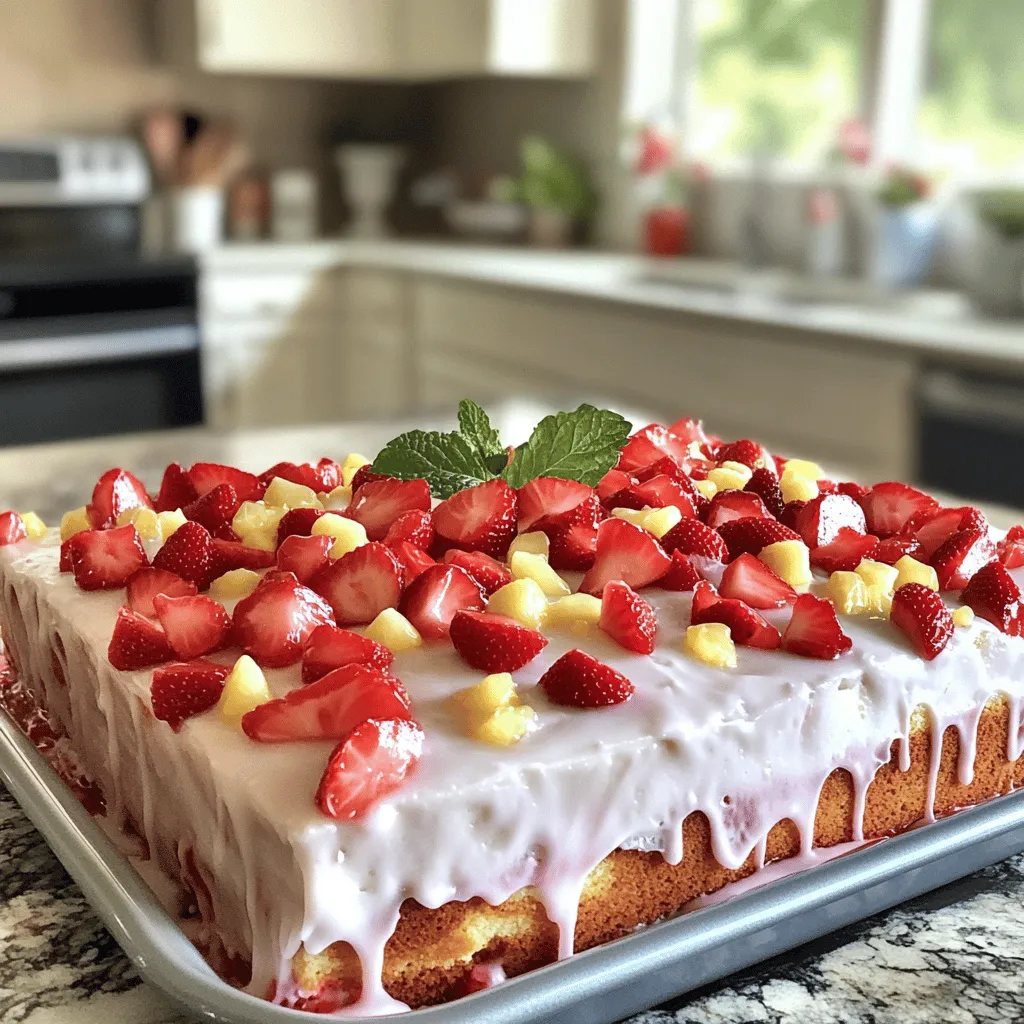 For the lemonade glaze, I combine powdered sugar and lemon juice. This mix gives a sweet and tangy finish. I may add lemon zest for extra zing. Don’t forget to garnish with more strawberries! They make the cake look stunning. Use fresh, ripe strawberries for the best flavor.