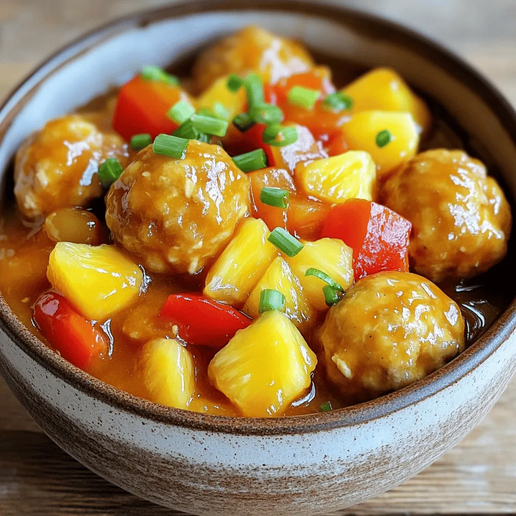 Pair your sweet and sour chicken meatballs with fluffy white rice or quinoa. These sides soak up the sauce well. You can also serve them with steamed vegetables for added color and crunch.