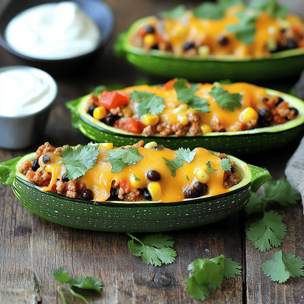 To make the best taco stuffed zucchini boats, choose medium zucchinis. They hold up well and provide a nice size for stuffing. Cut the zucchinis in half lengthwise. Use a spoon to scoop out the seeds and some flesh. This step makes room for the tasty filling. Bake the zucchini boats at 375°F for 25-30 minutes. You want them tender but not mushy.